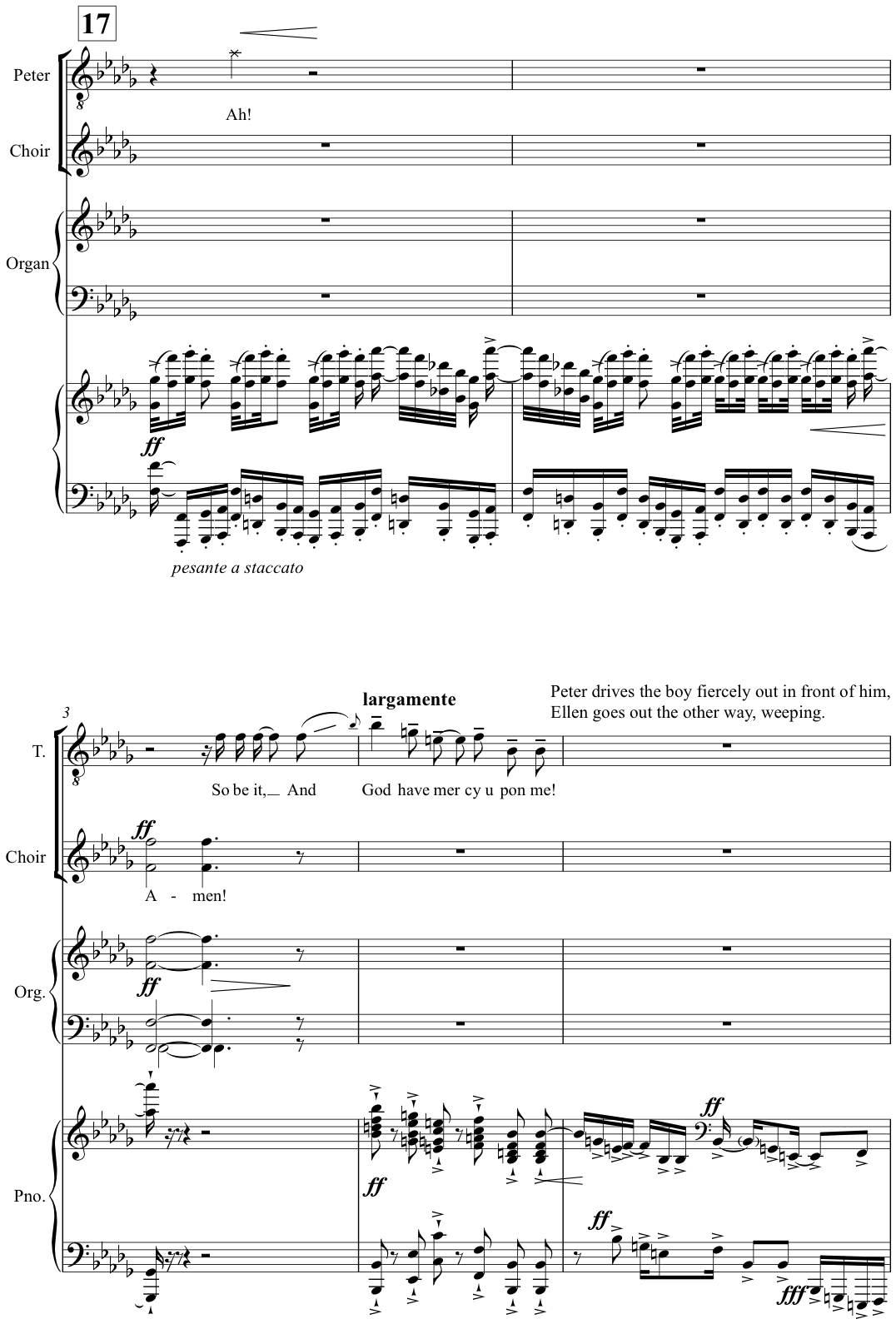 in B♭) confirming what the watching listener cannot doubt – that it is his own choice, his own ‘self-sentencing, a belated act of self-judgment that fulfils Peter’s ill-advised desire in the Prologue – “Let me stand trial!” – and predicts the opera’s ultimate progress toward his physical self-destruction’.[28]