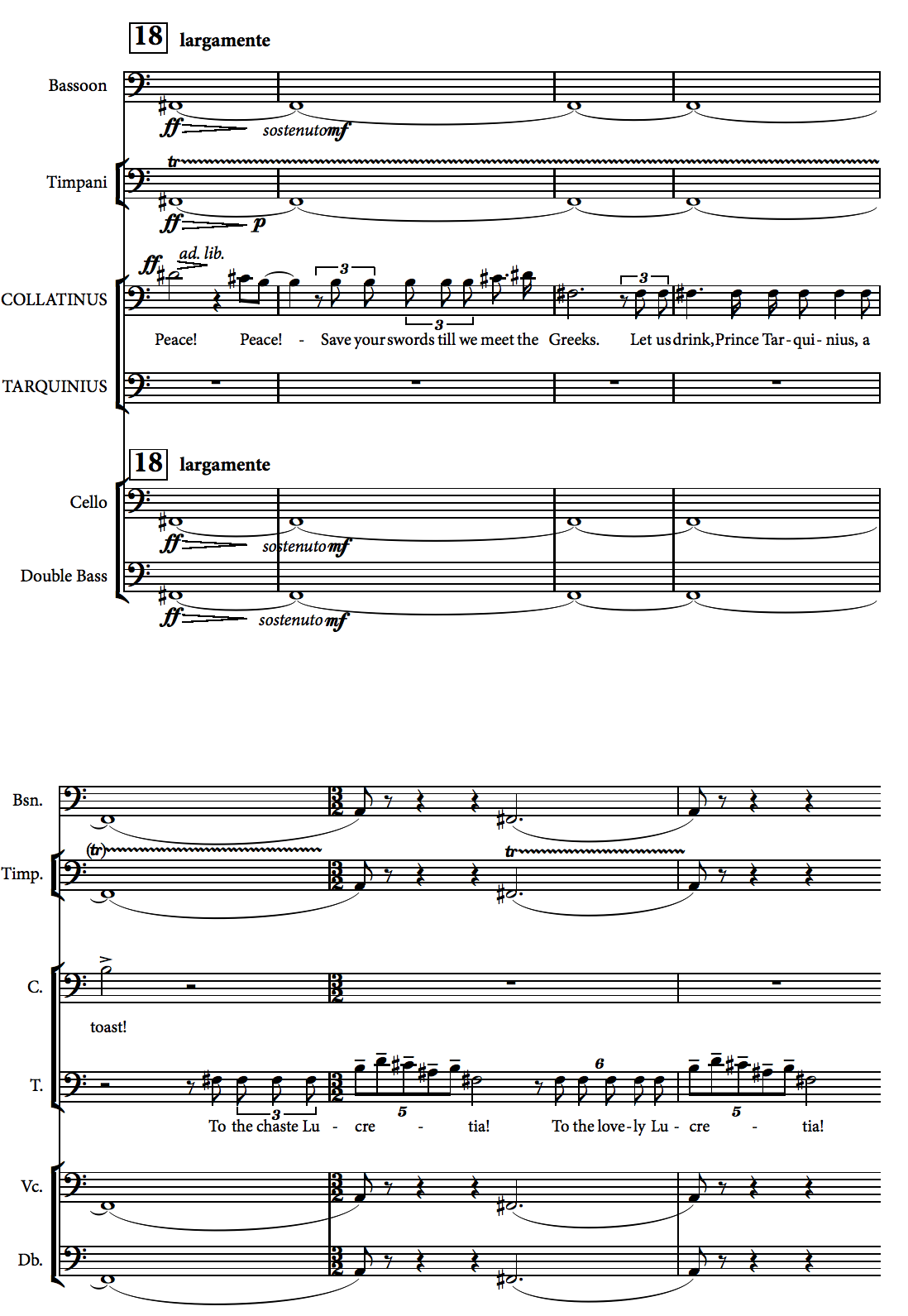 Collatinus[?]’. Tarquinius retorts: ‘Yet the linnet in your eyes / Lifts with desire / And the cherries of your lips / Are wet with wanting. Can you deny your blood’s dumb pleading?’ Eliding her answer with his last word, Lucretia answers ‘Yes, I deny, I deny’, and we are likely to agree with her, given that her eyes, lips, and blood are probably a comment on the subconscious reality of her dream, in which (as the libretto makes clear) she desires Collatinus. It is, in any case, grotesque male fantasy to suggest that a woman desires a rape, and even if on most days she desires Tarquinius, the point is that at this very moment she does not. She says ‘No!’, ‘Never!’, ‘I deny!’, ‘You lie!’, ‘I refuse!’, and ‘Please go!’ a total of twenty-six times before the rape, all but four of them in the first minute of her awakening, and these are merely the most obvious of her negative signals. It is an incoherent reading to argue that she is complicit in her rape.[6]