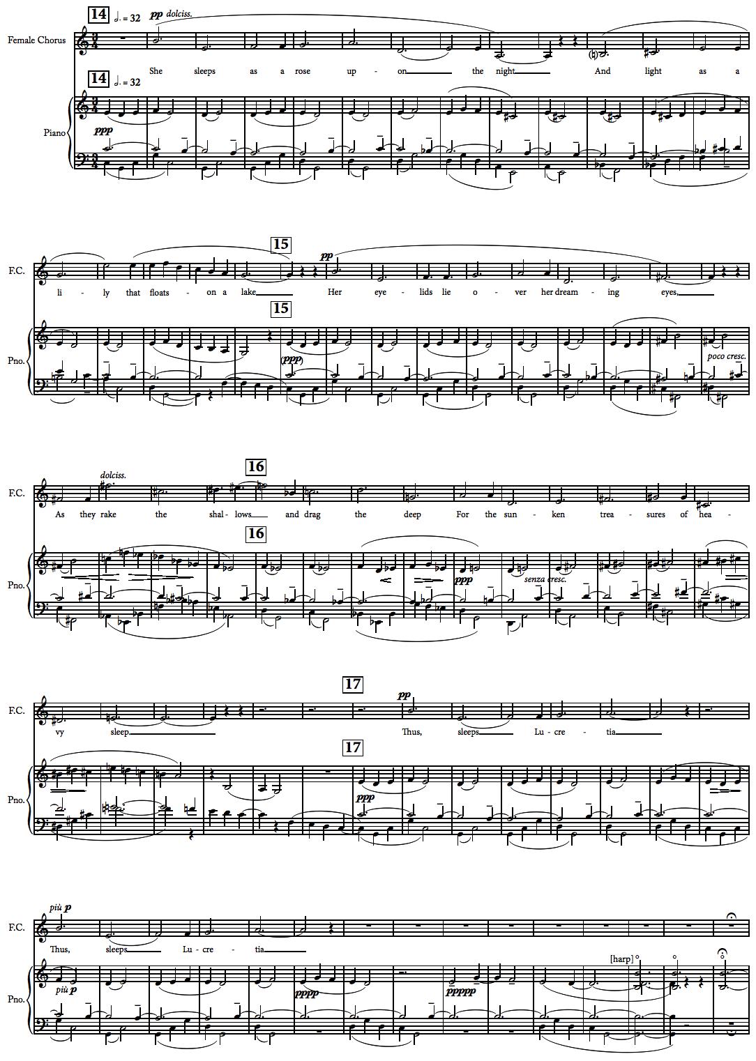 The naming of Lucretia, fixed in its insistence on her chastity and codified explicitly as a function of men’s honour and prestige, as well as the desexing, disembodying, and infantilising of her as a physical object, are all woven into the musical language of Britten’s opera in subtle ways.