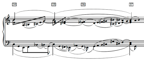 Several of the principal techniques have been understood for some time. Eric Walter White, writing in 1970, observed that what Philip Brett would later call the ‘male and female principles’ in the opera are represented respectively by scalar passages and passages in thirds.[44] At the crucial moment of rape the two gestures are superimposed in an explicit image of vaginal rape, with ‘the brassed horn frenziedly attempting to fill the open interval of the cor anglais’s minor third’.[45]
