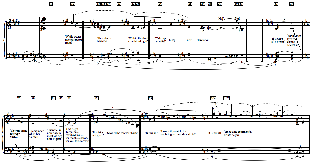 ‘mak[ing] his desire her crime’.[56] So both the pollution of Lucretia’s pure C major by the B that operates antagonistically alongside it and its juggernaut restatement in the epilogue are functions of the patriarchal discourse that shapes the whole.